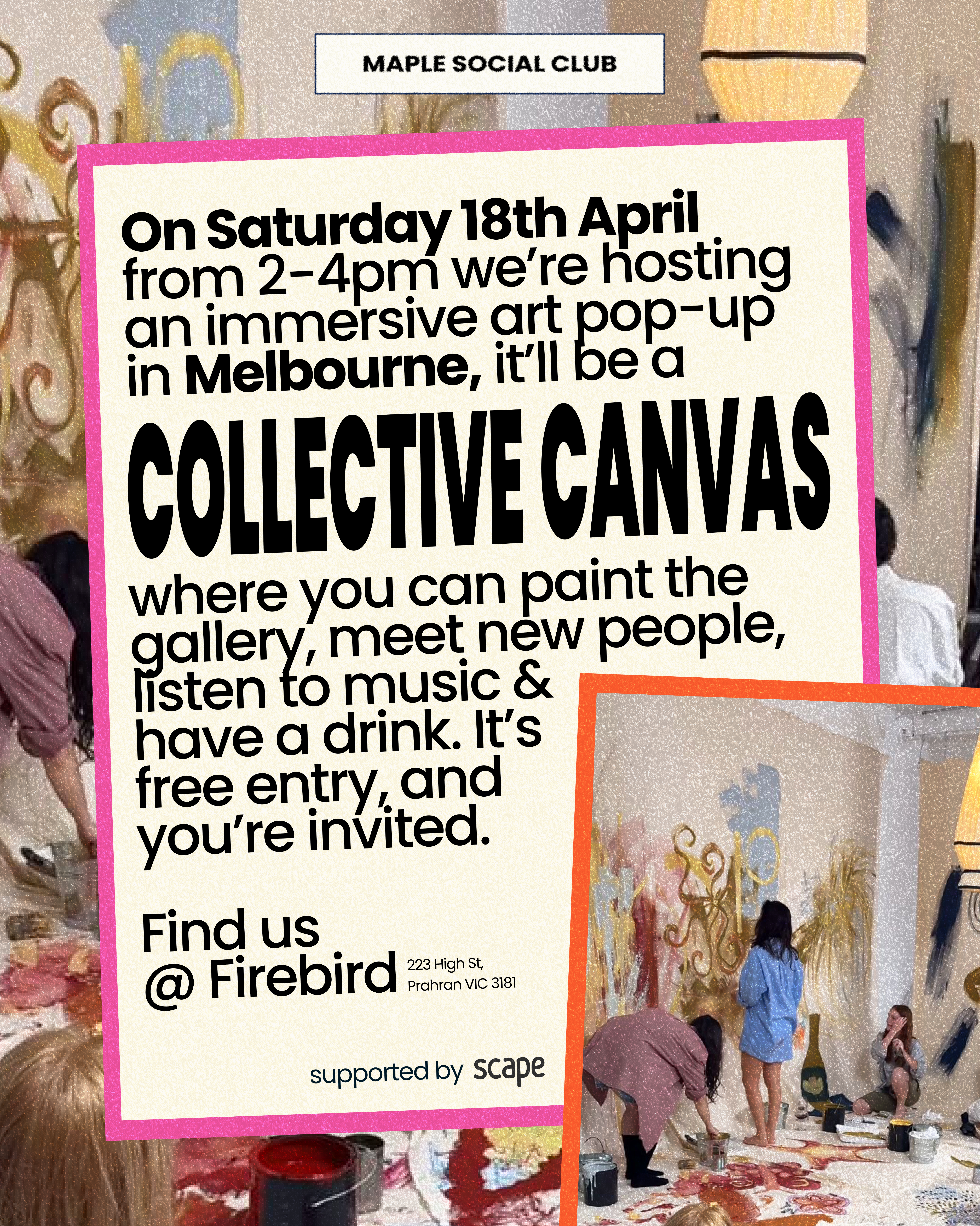 FAQ: Do I need a ticket? No, usually not. We do ask you to RSVP via our app, maple, so we can anticipate numbers & connect you to come cool people afterwards. Who comes to maple social events? in short: everyone is welcome. in long: we find our events to be most popular with young professionals (20-35 yr/olds). What is the vibe? Low pressure, high energy, kind people. Can I come solo? Sure can. If you want to meet folks prior to, we have a 'going solo' chat on Instagram & pre-connection in-app. How often do you host events? 1-3 times a month.